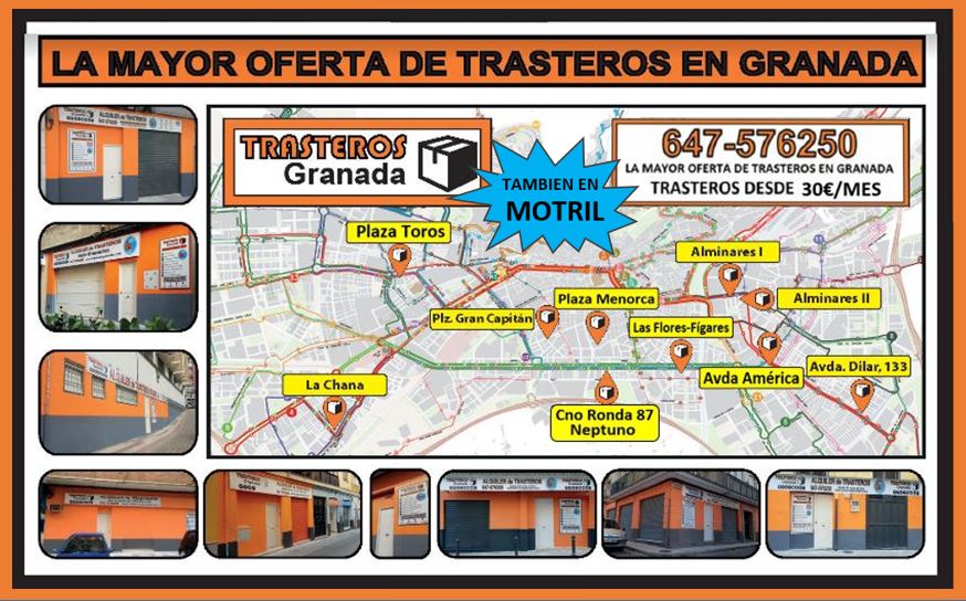 La más amplia oferta de trasteros en alquiler de Granada. Disponemos de trasteros en Centro, Zaidin, Camino de Ronda, Plaza de Toros, La Chana, Vergeles, Plaza Gran Capitán, Alminares, Barrio Fígares y las Flores.